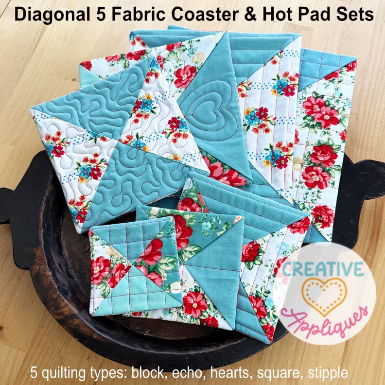 🔥 NEW Diagonal 5 Fabric Coaster In The Hoop Design Set
