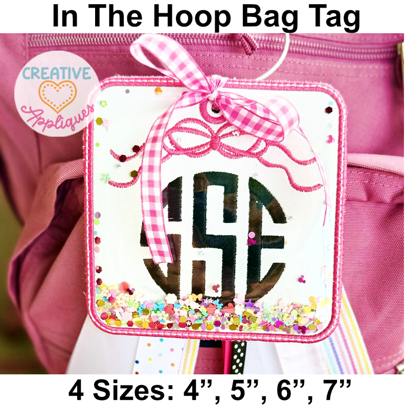 We just released 9 brand-new In-the-Hoop Bag Tag designs — and they’re glitter friendly! ✨💖