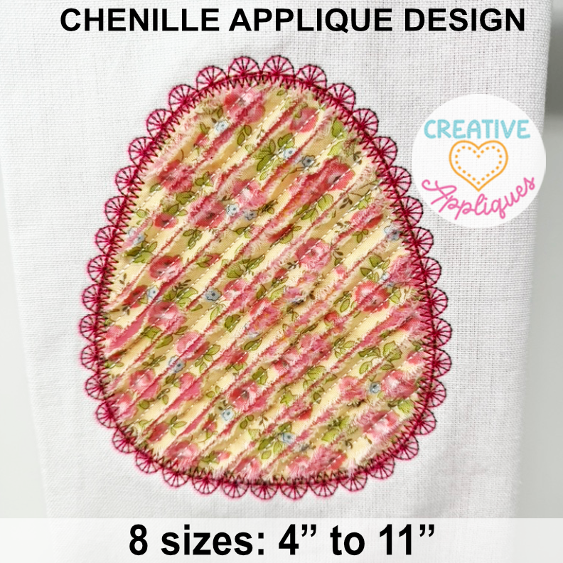 Just dropped are six (6) new chenille applique designs. Each design is available with the bean stitch finish or lace stitch finish each sold separately.