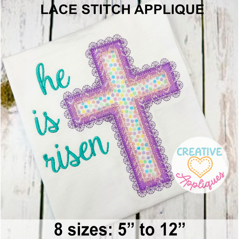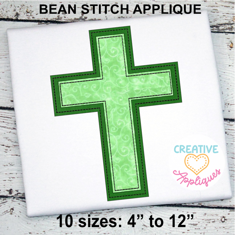 Three (3) new versions of the cross double applique designs. Each cross uses 2 fabric pieces to create this layered design. They are available in a double satin stitch, double lace stitch, and double bean stitch. (Sold separately).