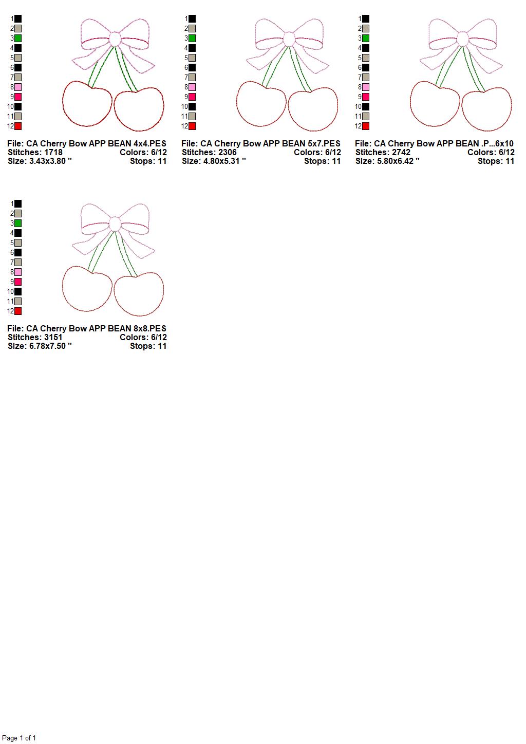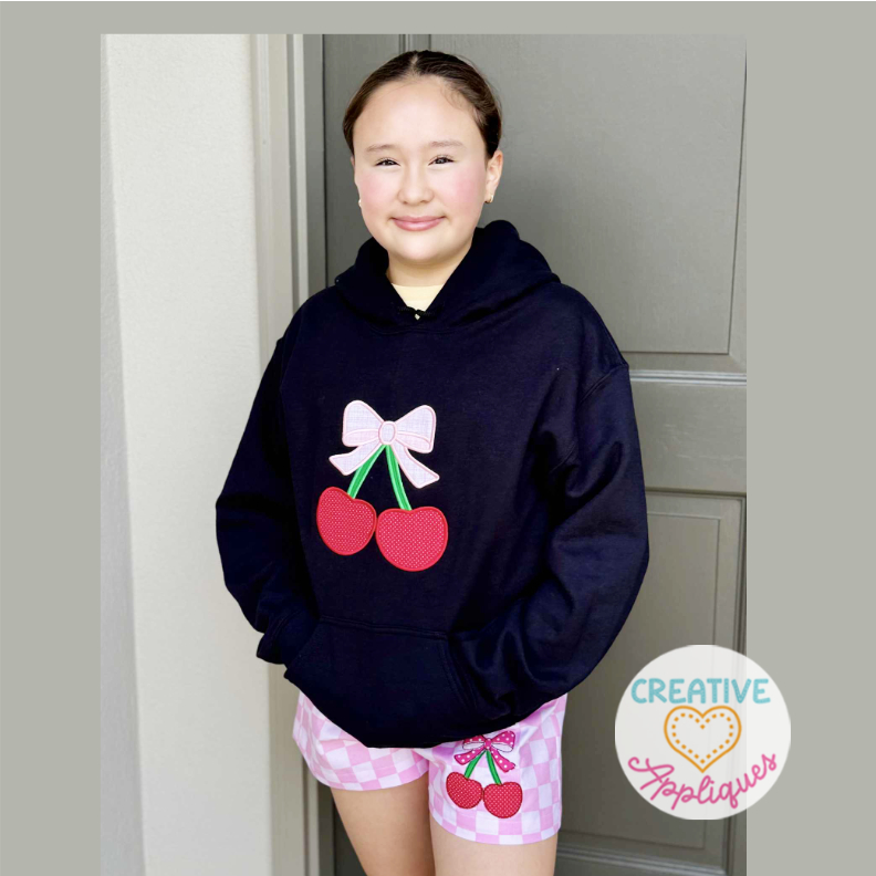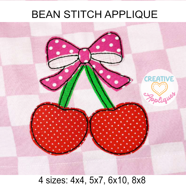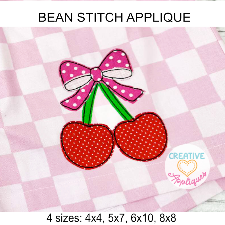 Bean Stitch Cherry Bow Applique Design