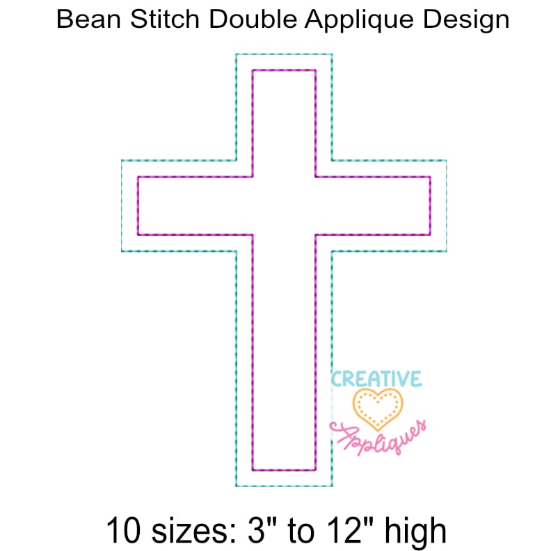 Finished in a bean stitch leaving the fabric edge raw. Uses up to 2 fabric pieces.