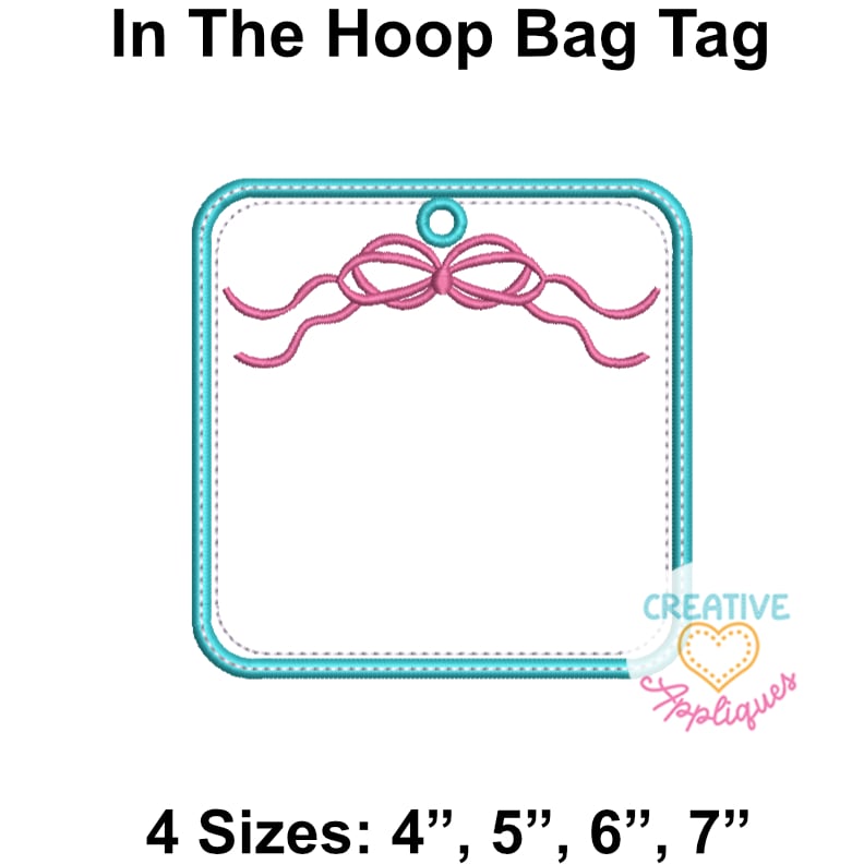 Square Bow Bag Tag In the Hoop Design Glitter Friendly